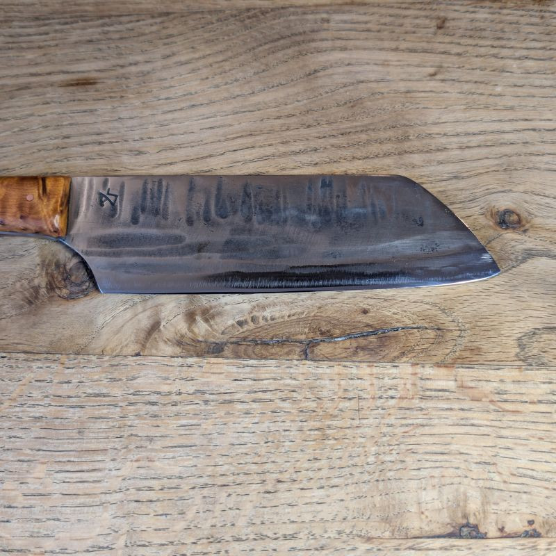Küchenmesser mit eier Klingeaus äußerst schnittfestem Wolframstahl 1.2419. Die Klinge ist äußerst belastbar und für alles in der Küche usw geeignet. Der sehr besondere Griff ist aus marokkanischer Thujaknolle. Optional könnt ihr eine massive Lederscheide mit Befestigungsriegel aus Rinderleder dazu erwerben – einfach auswählen und Wunschfarbe (Schwarz, Brauntöne) beim Checkout als Nachricht hinterlassen.